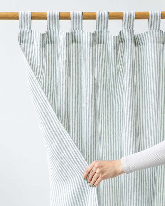 Tab top linen curtain panel (1 pcs) in Striped in natural