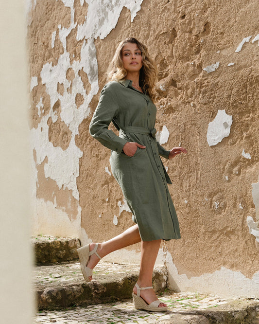 Midi Linen dress MADRID in Mist green