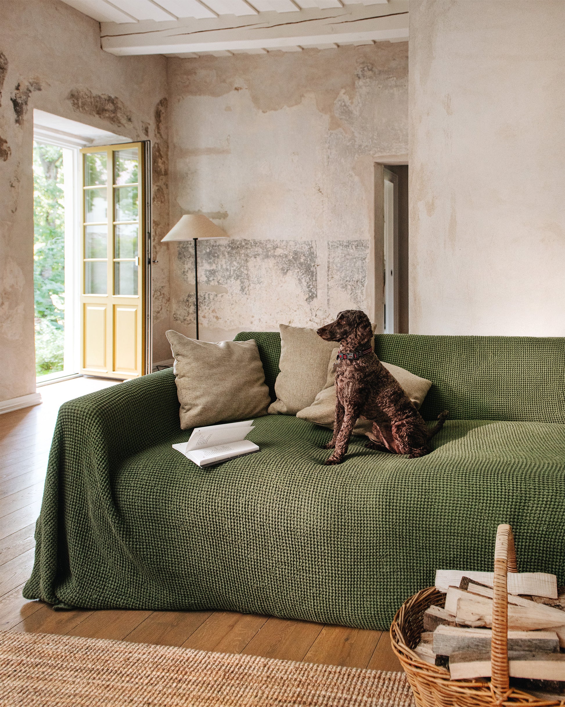 Our waffle linen couch cover is the easiest way to revive your sofa and upgrade your interior. It comes in a variety of MagicLinen textile colors, is extremely soft, and easy to care for. The design provides full coverage, including over the arms. It's also a perfect solution if you're looking to protect your couch from any damage caused by your lovely pets.
